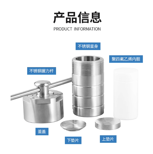 样品前处理:水热合成反应釜可用于原子吸收光谱及等离子发射等分析中的溶样预处理;也可用于小剂量的合成反应;还可利用罐体内强酸或强碱且高温高压密闭的环境来达到快速消解难溶物质的目的。在气相、液相、等离子光谱质谱、原子吸收和原子荧光等化学分析方法中做样品前处理。是在铅、铜、镉、锌、钙、锰、铁、汞等重金属测定中应用,还可作为一种耐高温耐高压防腐高纯氢销织器的反应容器,以及有机合成、水热合成、晶体生长或样品消解萃取等方面。