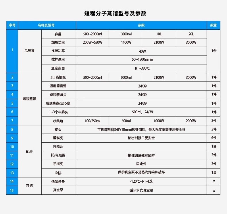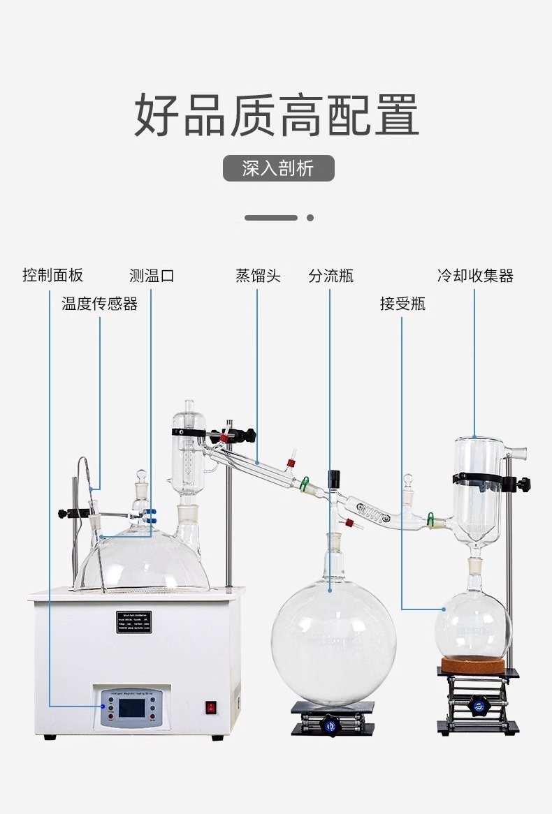 小样品量:短程分子蒸馏器的设计及其操作方式,使得其适用于小样品量的分离,即使是微量物质也可以分离。