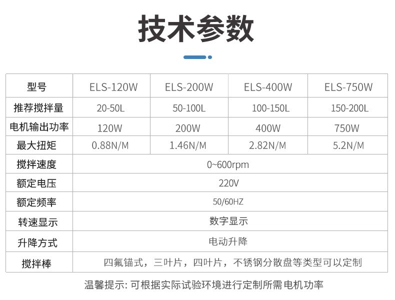 电动升降搅拌器的特点包括: