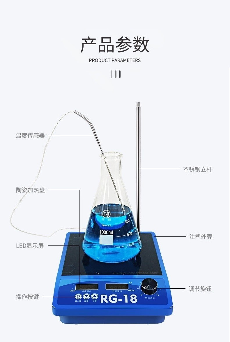 搅拌和加热功能:磁力搅拌器一般具有搅拌和加热的作用,可以使反应物混合均匀,温度均匀,并且对于一些需要控温的液体,可以随意改变搅拌的温度。