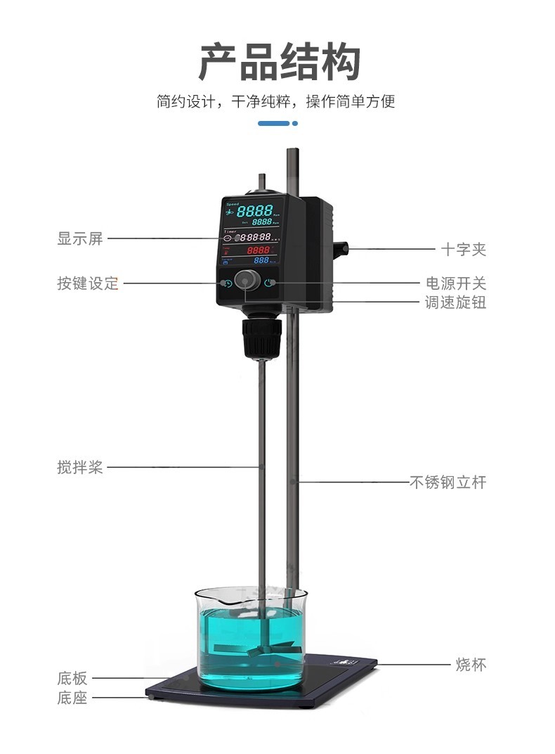 以上就是顶置电动搅拌器的主要特点。这些特点使得顶置电动搅拌器成为实验室中不可或缺的工具之一。