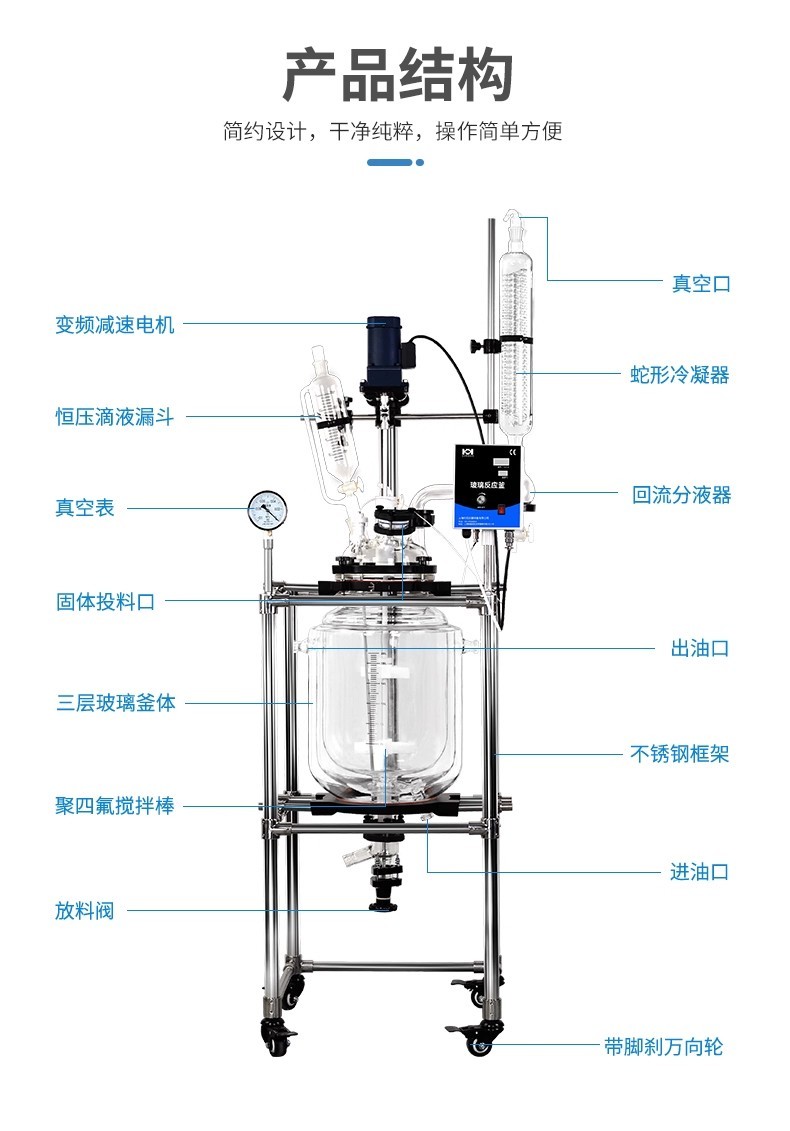功能特点:三层玻璃反应釜不仅能够进行加热或制冷反应,还具备抽真空的功能,可以在真空状态下进行反应,提高反应效率和稳定性。
