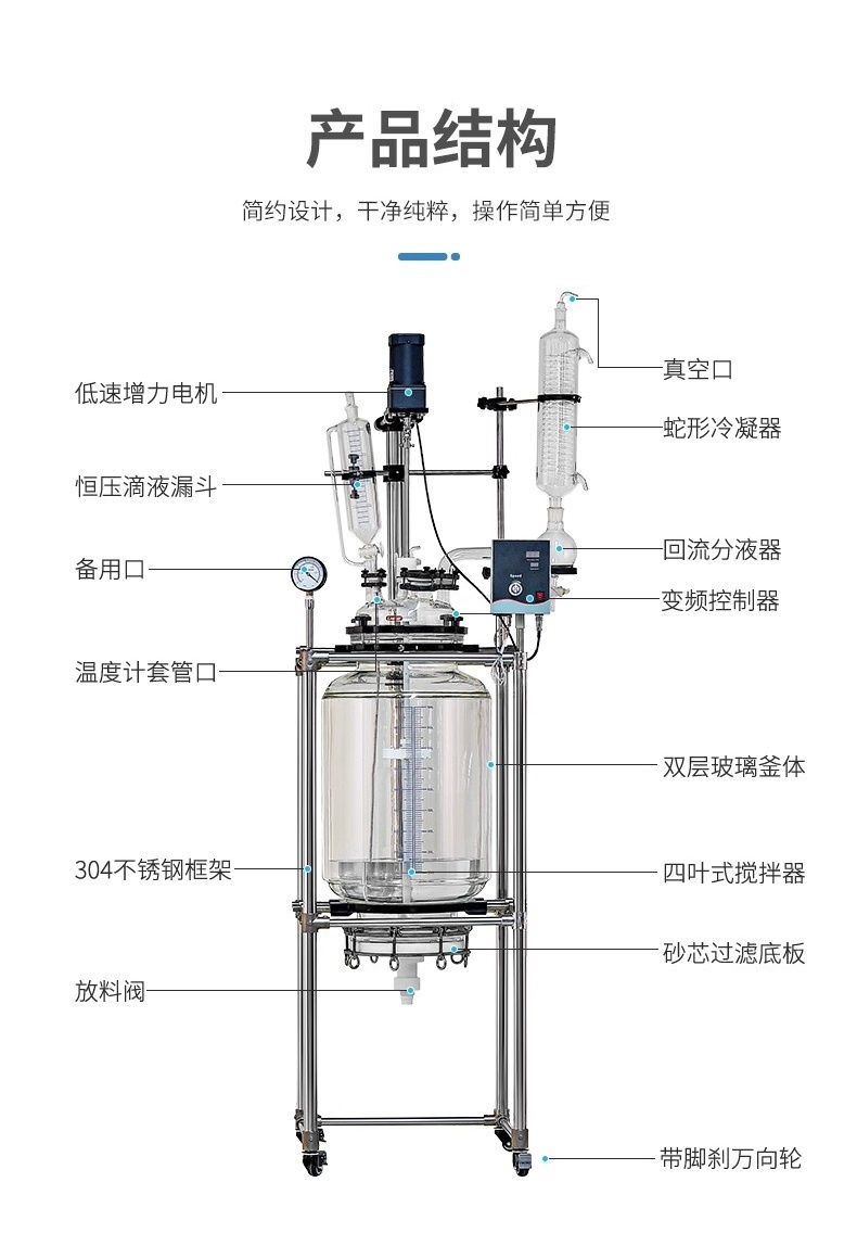 配件齐全:标配高效回流冷凝器、螺丝口、加料阀、测温管等,方便操作和观察实验过程。