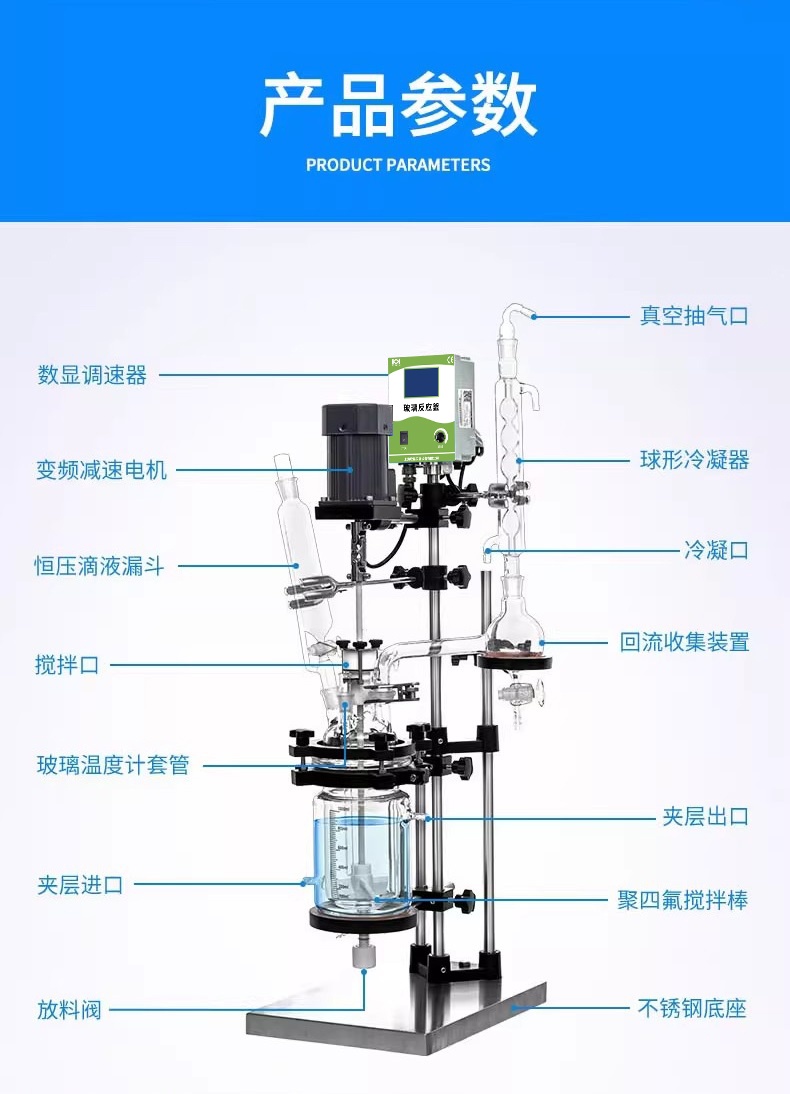 适用范围广:双层玻璃反应釜适用于各种化学反应、生物工程、制药、化工等行业的实验和生产,具有较广泛的适用范围。