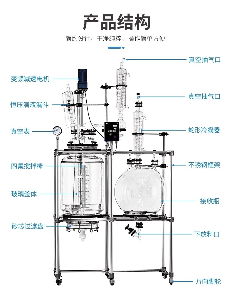 综上所述,玻璃组合结晶过滤釜是一种功能强大、操作简便、应用广泛的生化仪器,在现代精细化工、生物制药、科研实验等行业中发挥着重要作用。